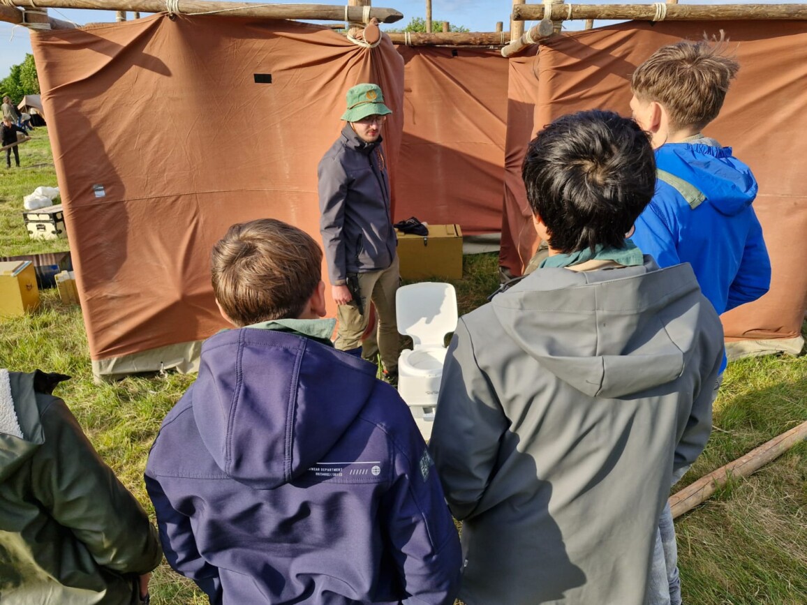 Hier legt scoutsleiding Sebastiaan uit hoe je naar de wc moet. Weten we dat niet? Nee, dat weten we niet. Als je thuis naar het toilet gaat, dan spoel je door. Dit kun je zo vaak doen als je wilt. Een hudo heeft deze luxe niet. Thuis veeg je af wat je af wilt vegen, vochtig toilet doekje d’r bij, overgebleven soep doorspoelen, pak vla die overdatum bleek te zijn, goudvisje.. hupsakee! Kan gewoon! Een hudo heeft deze luxe niet. Daarom de verplichte training: “Hoe toiletteer ik op een hudo”.