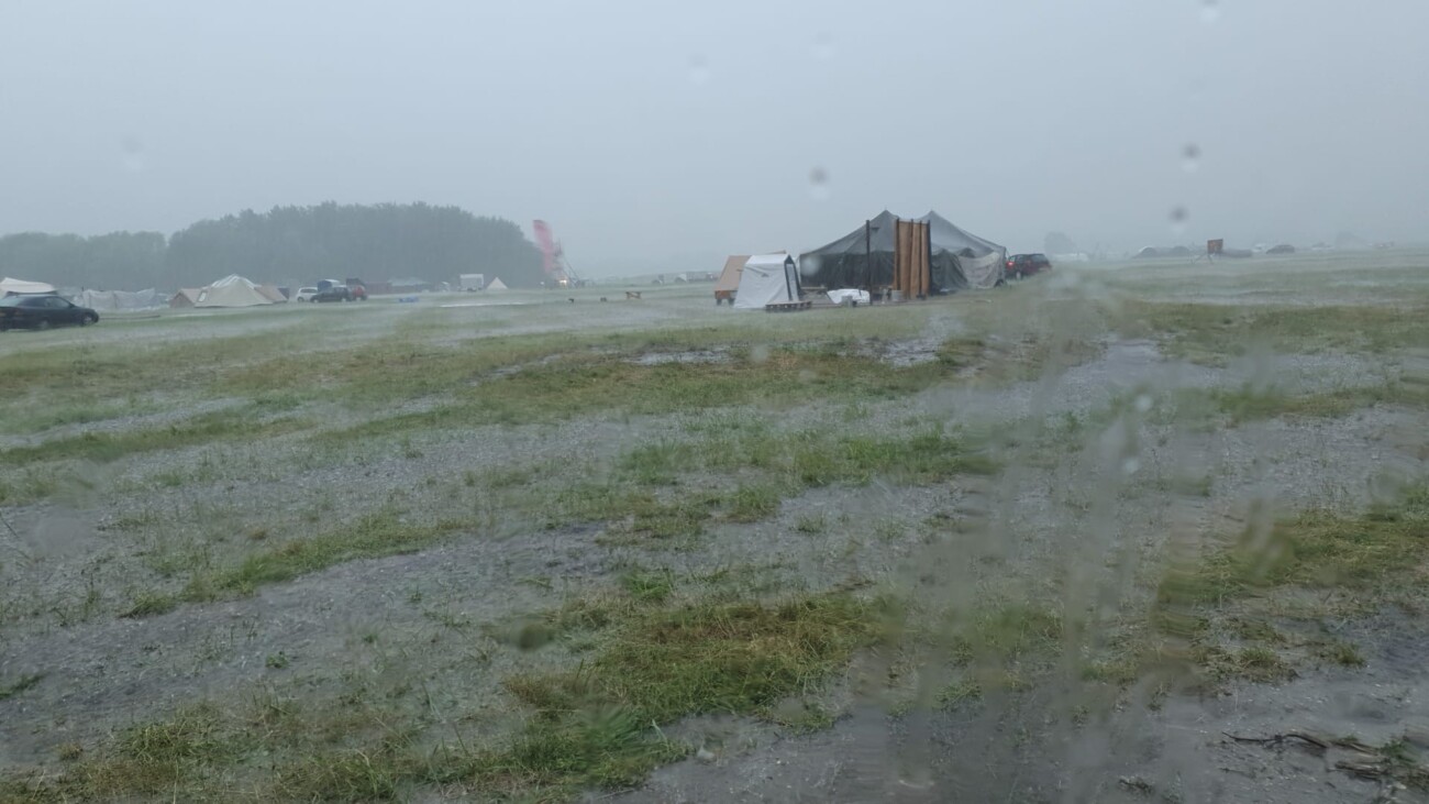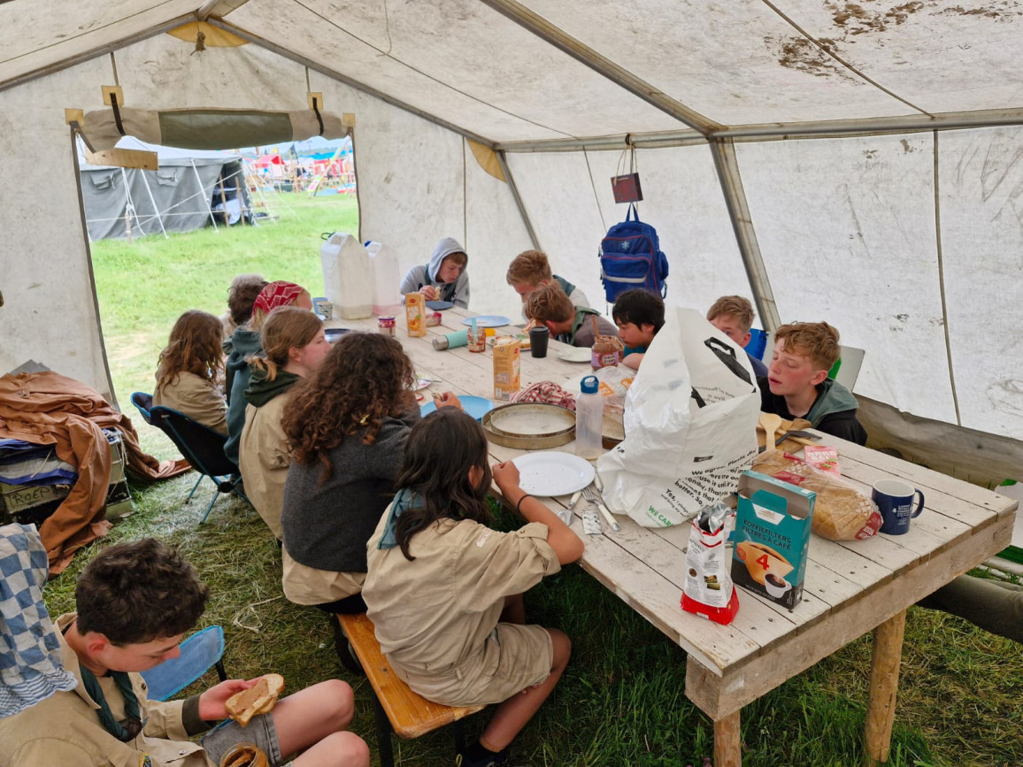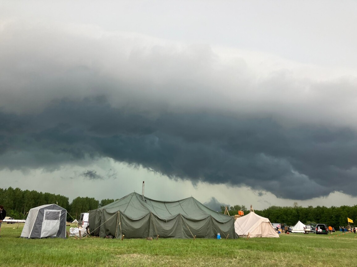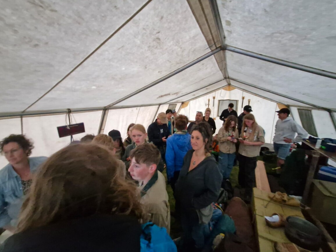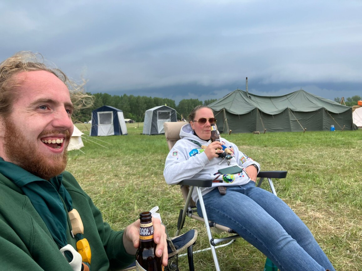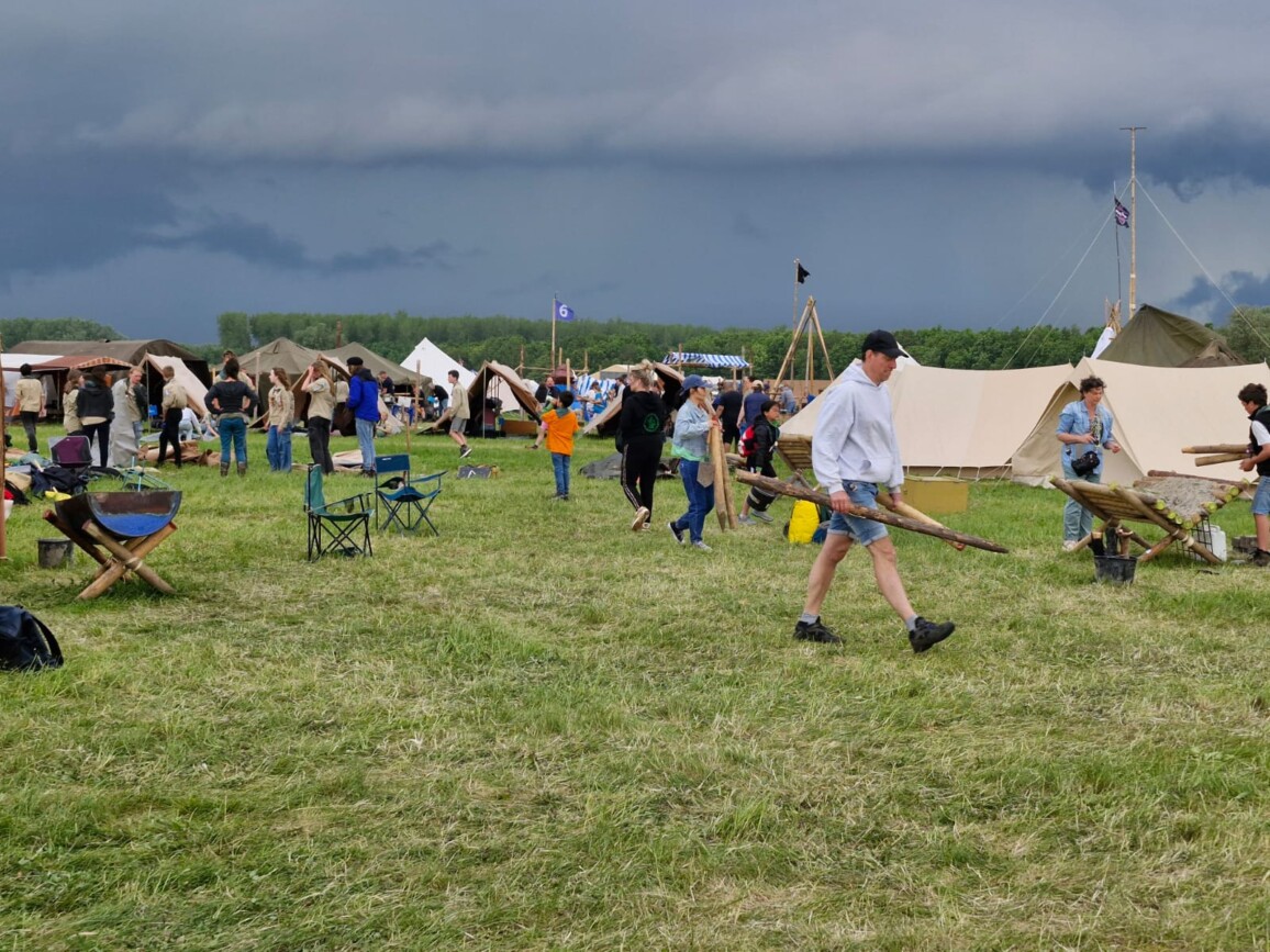 Het begon rustig. Een beetje regen, een beetje boel, maar ok. De welpenleiding zijn maar gaan slapen. De explorerbegeleiding wacht tot het overwaait.